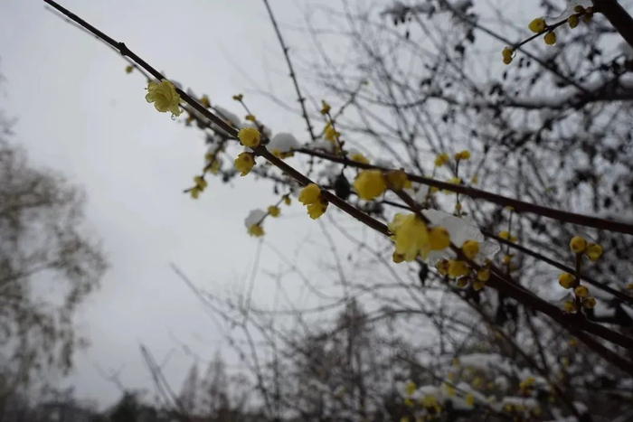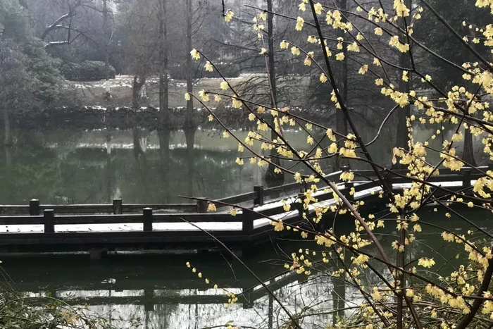 散步时往也西湖走一圈,伴着湖边清香的蜡梅,一天的疲劳便烟消云散了。若再去花店买上几枝,插在瓶中,放在书桌边,一周的快乐便有了。