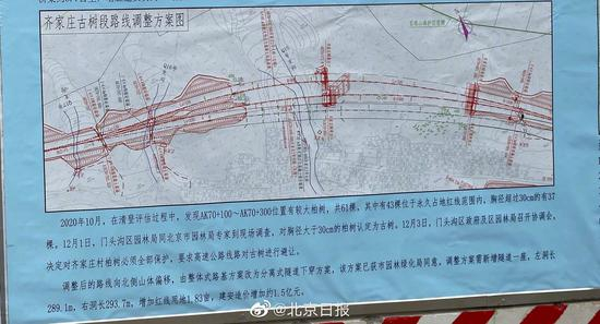 在保护古树的要求确定之后,国道109新线高速重新更改设计方案。经过反复论证优化,后来确定了隧道下穿改线方案。新的施工图纸上,国道109新线高速将在齐家庄新增一座290米长隧道,绕过古树群。(@北京日报 记者 李博)