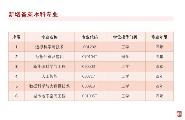 此次新增的7个本科专业,聚焦国家经济社会高质量发展战略需求,结合学校学科优势和人才培养定位,围绕测绘空间科学、新能源、人工智能、大数据应用等新兴产业和多学科交叉融合领域创新发展,旨在优化专业布局,实现地质行业转型升级,积极向地球系统科学拓展,落实本科专业类教学质量国家标准,不断探索人才培养新模式。