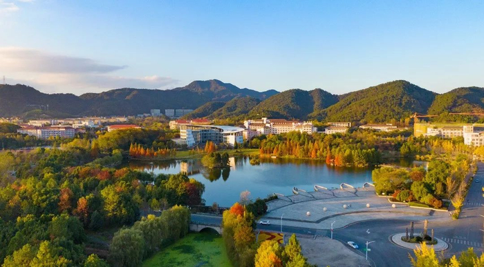 第五条 学校位于杭州市临安区,是杭州城西科创大走廊的重要组成部分,占地面积2800余亩,校园环境优美,教学设施先进,生活条件完善,是“两园(校园、植物园)合一”的现代化生态校园,被誉为“一个读书做学问的好地方”,被评为“国家生态文明教育基地”,2019年、2020年学校连续两年位居中国大学校园植物排行榜第一。办学地点:东湖校区地处浙江省杭州市临安区武肃街666号,衣锦校区地处浙江省杭州市临安区衣锦街252号。邮政编码311300。学校的国家代码为:10341,浙江省代码为:0011(普通招生)、0311(三位一体招生)。