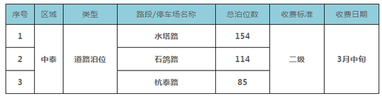 中泰街道合计新增353个泊位,将于3月中旬起开始收费。