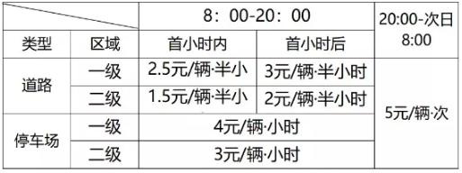 1。道路停车泊位15分钟(含)免费停放,公共(专用)停车场30分钟(含)免费停放;
