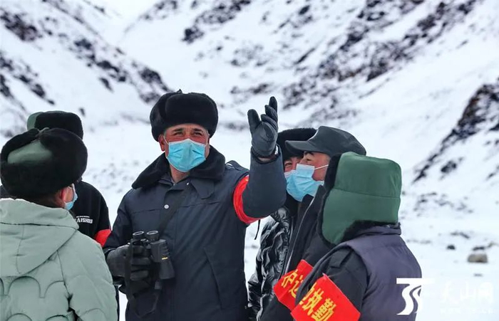 巡逻路上,拉齐尼·巴依卡总是走在最前面探路,凭着多年经验,多次帮边防官兵化险为夷。