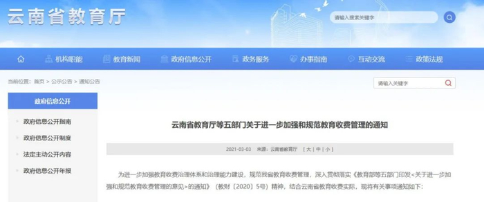 为进一步加强教育收费治理体系和治理能力建设,规范我省教育收费管理,深入贯彻落实《教育部等五部门印发的通知》(教财〔2020〕5号)精神,结合云南省教育收费实际,现将有关事项通知如下。
