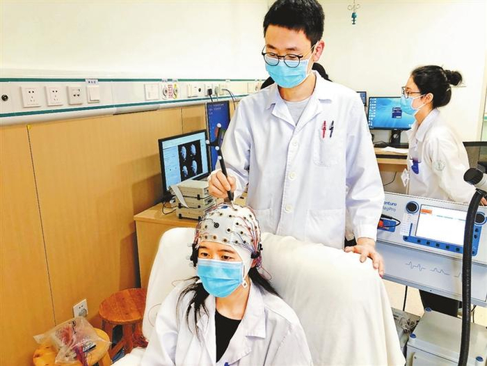 市人民医院神经内科主任郭毅告诉记者,科室开展这项技术研究,始于“三名工程”项目。科室引入美国斯坦福大学Robert Malenka院士脑病团队,对经颅磁治疗进行共同研究,以改善老年痴呆人群的认知功能水平从而提高他们的生活质量。