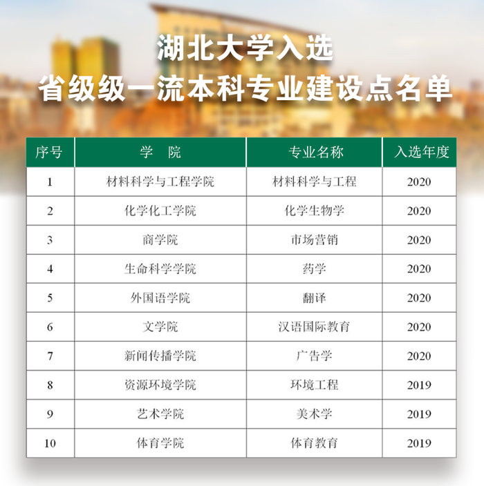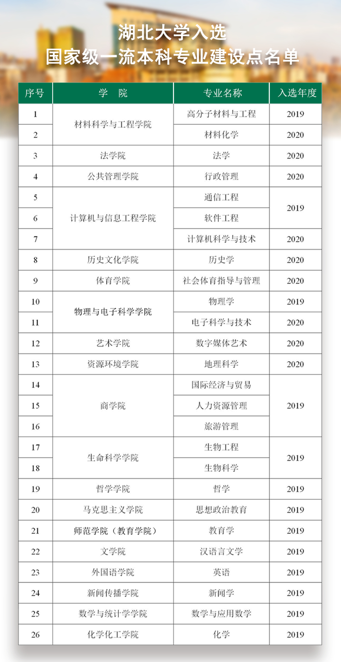 原标题:新增9个,湖北大学26个专业入选国家级一流本科专业建设点!