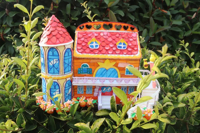 说干就干,她将家里的纸盒废物利用,借助尺子等工具以及眼睛的粗略衡量画出立体图,再运用工具将纸盒一步步成型,堆砌,上色,使得一堆废纸盒变成可爱的小房子。成就感填满心灵,这一个小房子不仅仅是表面的精美和背后的心血,更蕴含着高同阳的信心和勇气。