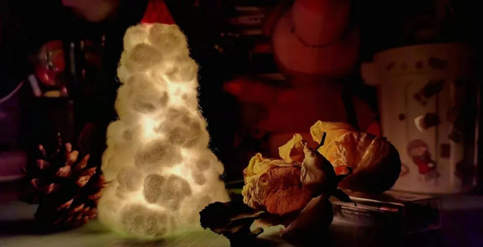 好在没过几日,她跟随家人去郊外玩耍,收获了很多小木棍。回来后,这项源于思念,告白海大的浪漫手工计划再次开启。用长度和直径大致相当的小木棍粘成底座,将小灯泡装入其中,再把白色黏土捏成樱花般的模样,细致的上色。一块块白色的黏土块摆脱了原来的模样,蜕变为美丽的樱花瓣。最后将粉嫩的樱花粘在小木头框架上,手工作品终于完成。
