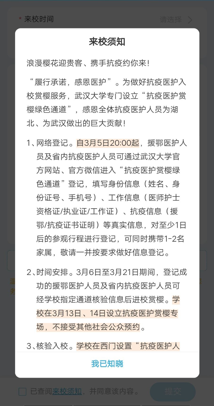 3月8日之前校园封闭,不可入校赏樱。校友可选择樱花期内任意一天(3月13日、14日抗疫医护人员赏樱专场除外)返校。