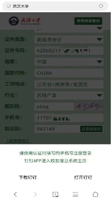 校友身份认证时填写的手机号码一定要和注册-登录钉钉的手机号码一致,才能进入校友信息系统的用户界面。