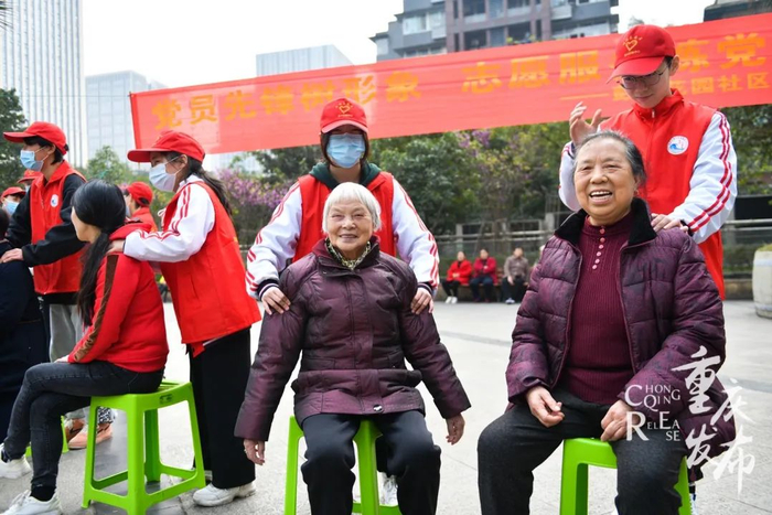 3月5日,重庆市渝中职业教育中心护理专业的志愿者,在彭家花园社区为老人提供按摩服务。邹乐 摄