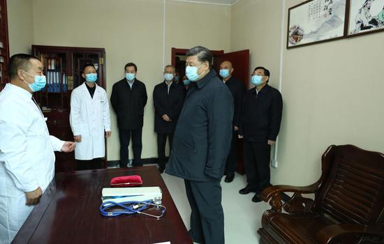 ↑2020年4月21日,习近平在陕西省安康市平利县老县镇卫生院,了解基层卫生防疫、医疗保障工作。
