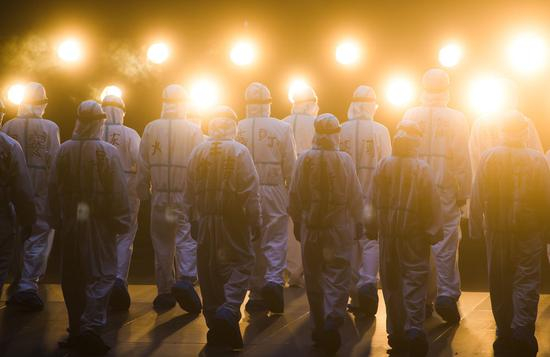 ↑2020年9月11日,由武汉人民艺术剧院创作的大型原创抗疫话剧《逆行》在武汉中南剧场上演。该剧将医务工作者逆行出征的英雄事迹搬上舞台,以艺术的形式弘扬伟大的抗疫精神。
