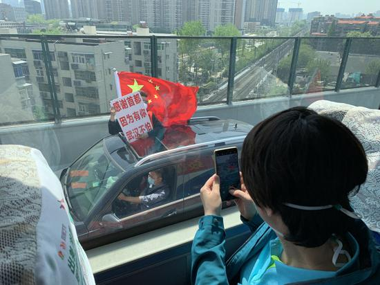 ↑2020年4月15日,武汉市民自发上街送别北京协和医院国家援鄂抗疫医疗队。