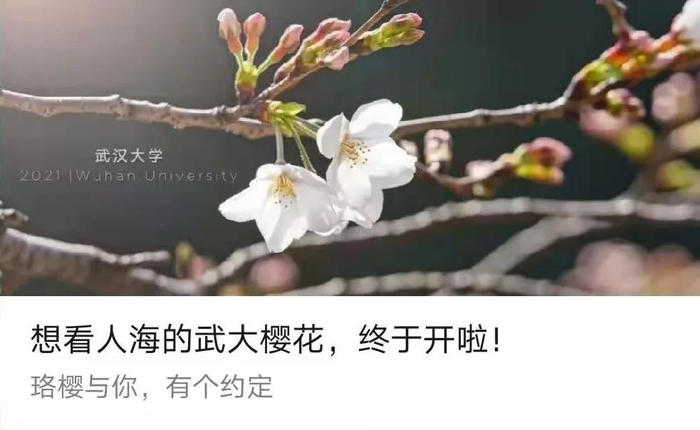 3月21号之后武汉大学将继续按照常态化疫情防控要求,恢复实行校园封闭管理。请大家看准时间,不要错过和樱花的约会~