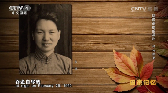 1950年2月26日,被逮捕后的朱枫取出藏在大衣衬肩里的金手镯,吞金自尽……