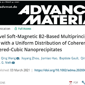 近日,我校材料科学与工程学院王清教授团队在高性能高熵合金的软磁性能研究方面取得突破性进展,实现了结构-功能一体化的材料设计,相关工作发表于材料科学领域顶尖期刊《Advanced Materials》。