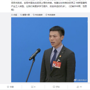 原标题:邹彬代表:推动农民工向新型建筑产业工人转型