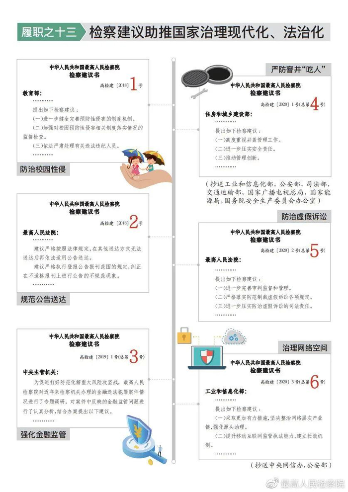 积极参与网络治理。起诉网络犯罪14.2万人,在刑事案件总量下降背景下,同比上升47.9%。针对传统犯罪加速向网上蔓延态势,专设检察办案指导组,制定追诉、指控犯罪65条标准,用好专业人员辅助办案制度,助推依法从严治网。结合办案,就整治网络黑灰产业链、提升移动互联网监管执法能力、加大未成年人网络保护力度向工业和信息化部发出第六号检察建议,抄送公安部等部门,共同推进网络秩序综合整治。