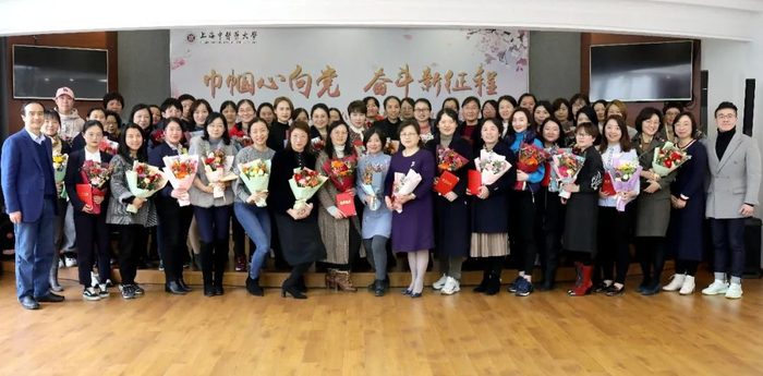 3月8日,“巾帼心向党·奋斗新征程”上海中医药大学庆祝“三八”国际妇女节111周年表彰会在图书馆裙楼一楼会议室举行。我校党委副书记、工会主席季光,工会常务副主席车荣华、工会副主席何建成,获得校级以上荣誉称号的先进个人及集体,女教师、女医护代表共计60余人出席。