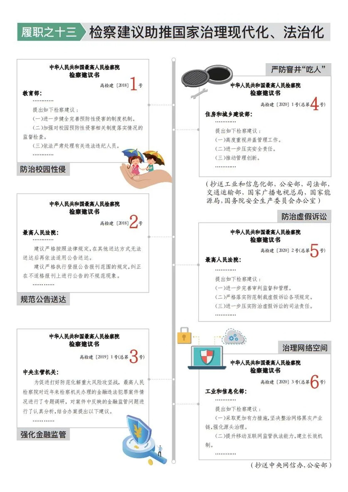 积极参与网络治理。起诉网络犯罪14.2万人,在刑事案件总量下降背景下,同比上升47.9%。针对传统犯罪加速向网上蔓延态势,专设检察办案指导组,制定追诉、指控犯罪65条标准,用好专业人员辅助办案制度,助推依法从严治网。结合办案,就整治网络黑灰产业链、提升移动互联网监管执法能力、加大未成年人网络保护力度向工业和信息化部发出第六号检察建议,抄送公安部等部门,共同推进网络秩序综合整治。