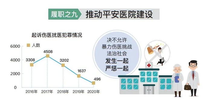 彰显法治的温暖与力量。坚决维护国防利益和军人军属合法权益。起诉破坏军事设施、破坏军婚等涉军犯罪381人。与有关部门制定加强退役军人司法救助工作意见,救助378名遭受不法侵害的军人军属、退役军人,是2019年的3倍。办理军用土地保护和军营周边环境整治以及机场净空、舰艇航道、军事设施维护等公益诉讼151件。某军用机场附近企业违法排放,严重影响部队战训。辽宁军地检察机关联署发出检察建议,驻地政府迅即整治,多年扰军难题得到系统治理。切实维护港澳台同胞、海外侨胞和归侨侨眷合法权益。依法妥善办理涉港澳台和涉侨案件。浙江青田“检侨之家”以远程视频为海外华侨解申诉难题。坚决严惩任何一起伤医扰医犯罪。起诉496人,在前两年大幅下降基础上,同比再下降69.7%。高度重视特殊群体权益保障。会同中国残联推广杭州经验,开展无障碍环境建设公益诉讼,“有爱无碍”让残障人士放心出门。针对“无码老人”出行、消费困难,开展信息无障碍公益诉讼,促请职能部门消除“数字鸿沟”。与全国妇联完善保护妇女儿童权益协作机制。