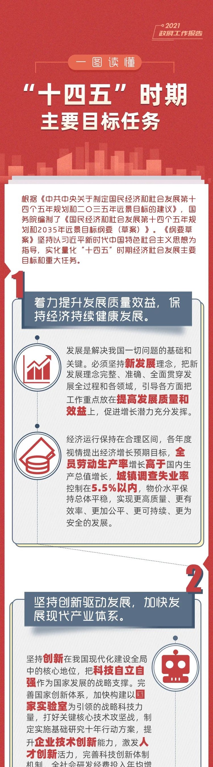 扩大就业容量,完善高校毕业生、农民工、退役军人等重点群体就业支持体系,帮扶残疾人、零就业家庭成员等困难人员就业,城镇调查失业率控制在5.5%以内。