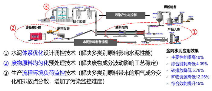 系列技术在北京金隅集团等企业应用,经第三方国检机构生产现场核查,单位产品综合能耗降低4.39%、总体温室效应降低5.78%、不可再生资源消耗降低12.25%。同时,"十三五"期间,协助北京金隅北水环保科技有限公司实现了燃料替代率31%,其他协同处置垃圾的企业燃料替代料超过了10%,水泥生产的煤炭使用量同比下降5.28%,减少53.7万吨标准煤,减少二氧化碳排放约100万吨。
