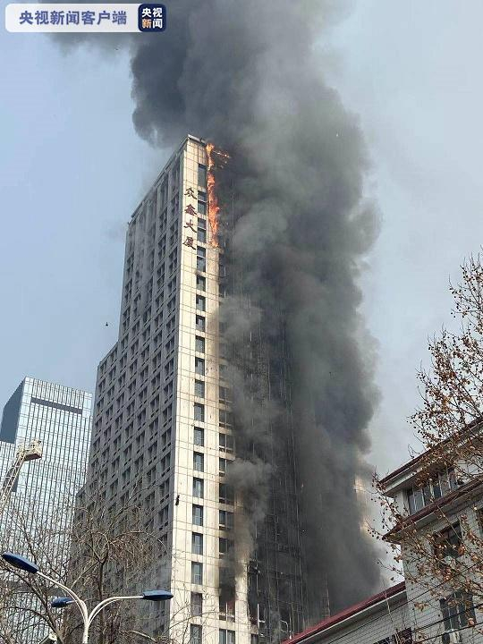 石家庄一加油站附近高层建筑失火:保温层燃烧,火场无人被困
