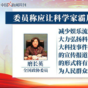 全国政协委员磨长英表示,让科学家霸屏而非流量明星。磨长英指出,当前各类媒体更多以娱乐化手段吸引和开发受众市场,导致“流量明星”霸屏。建议国家和地方主流媒体应适当减少纯娱乐栏目的比重和时间,同时增加对重大科技事件和优秀科技人员事迹的宣传报道,大力弘扬科学家精神。在科技宣传上适当借鉴娱乐化的方式方法,把传播内容与群众关心的热点问题紧密结合起来,运用大众的、通俗的形式,将有难度的学术语言转化为广大人民群众喜闻乐见的话语形式,提高人民群众对科技的兴趣,营造全民爱科学、学科学、谈论科学的良好氛围。