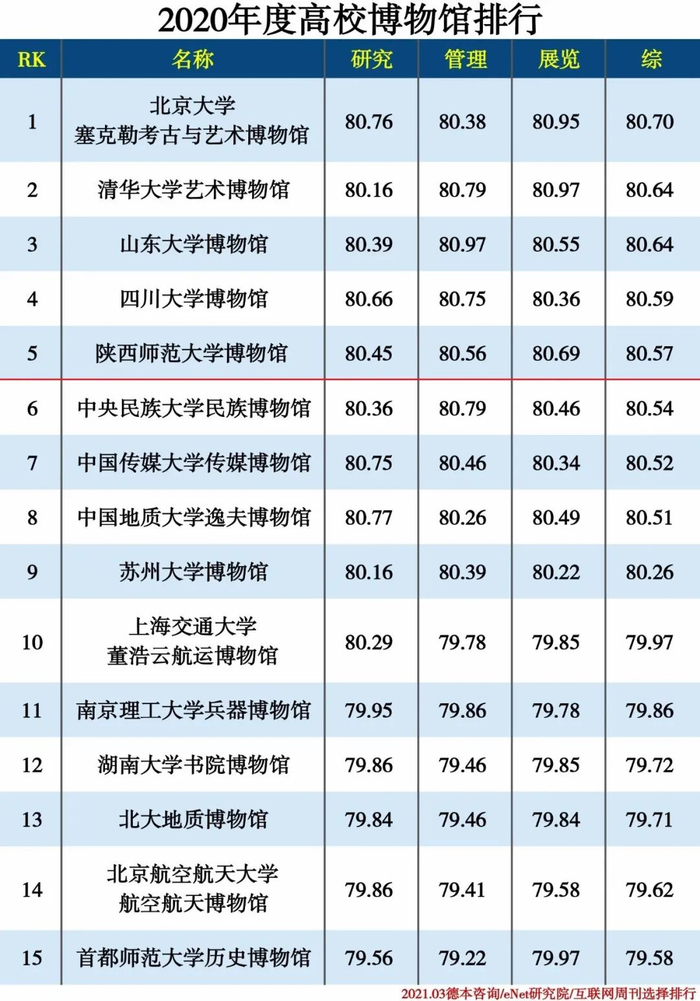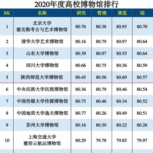 互联网周刊发布《2020博物馆分类排行》,排行涉及综合类、遗址类、自然科学类、文化艺术类、高校、私人博物馆等六大类博物馆,分别从研究、管理、展览、综合等角度,进行分类汇总,得出相应排行榜。我校博物馆位列2020年度高校博物馆第五。