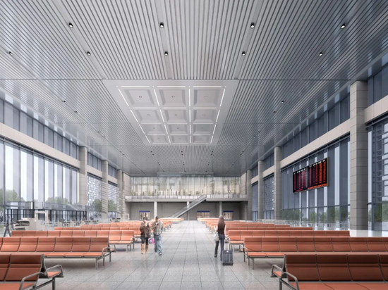 室内设计以现代简洁风格搭配抽象的传统文化元素,内部空间通透开敞,将城市景象展现给站内的旅客,营造出轻松自然并富于新鲜感的现代车站氛围。