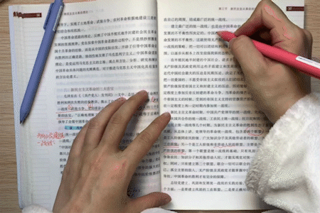 我的笔记就是最“亮”的本!上课的时候,我喜欢直接把笔记写在课本上。平常,我会提前对课本进行预习,将书中长句进行切割,从而增强自己对知识点的理解。此外,我也会利用不同颜色的荧光笔区分知识点的重要性,便于课后记忆。有一点小体会,我想跟大家分享:当知识点篇幅过长时,只需要标注关键词,而不要勾画整段,有时候重点太多反而适得其反。