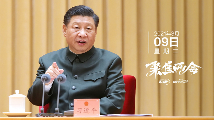 3月9日下午,中共中央总书记、国家主席、中央军委主席习近平出席十三届全国人大四次会议解放军和武警部队代表团全体会议。