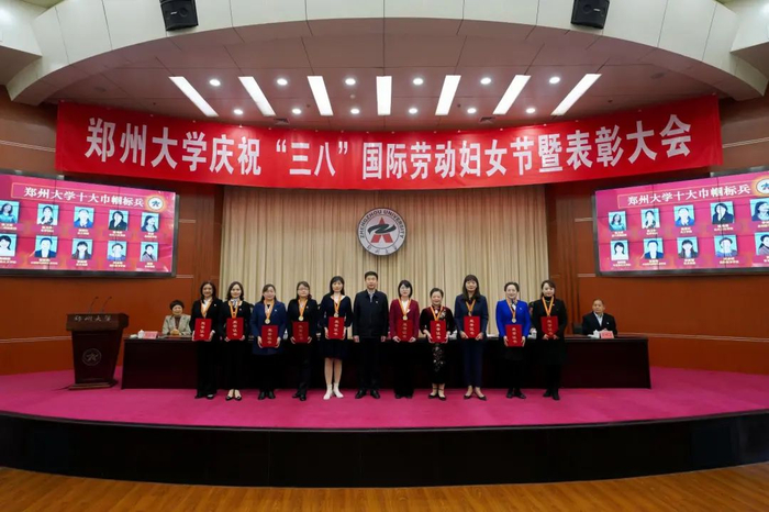 会上表彰了10名郑州大学“巾帼标兵”,校党委书记宋争辉为她们颁发了奖牌和荣誉证书。