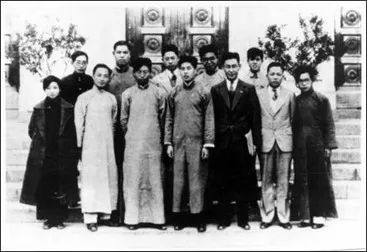 1935年下半年蒋南翔当选为《清华周刊》主编,以此为舆论阵地,在团结同学和扩大进步思想影响方面发挥了重要作用。图为周刊工作人员合影,前排左4为蒋南翔。