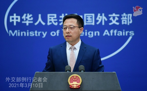 原标题:2021年3月10日外交部发言人赵立坚主持例行记者会