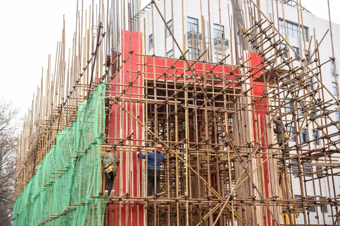 目前南门整体模板支装已初现样貌,能清晰看出南门轮廓框架。据项目负责人介绍,目前该项目工程正在按照工程进度施工,计划于5月20竣工。