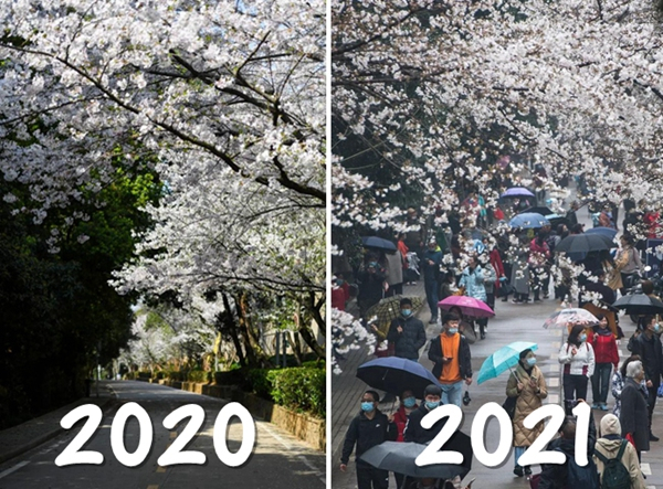 去年的樱花季,正值抗疫关键期,四万多名医护人员逆行出征驰援湖北,却无缘赏樱。樱花大道人影难觅,人们只能宅在家里从屏幕上看到武汉樱花“孤芳自赏”的画面。为此,武汉大学以公开信的形式作出承诺:2021年至2023年连续三年,为抗疫人员开通赏樱绿色通道。“来年再来武大赏樱”,成为医护人员和武汉的春日之约。