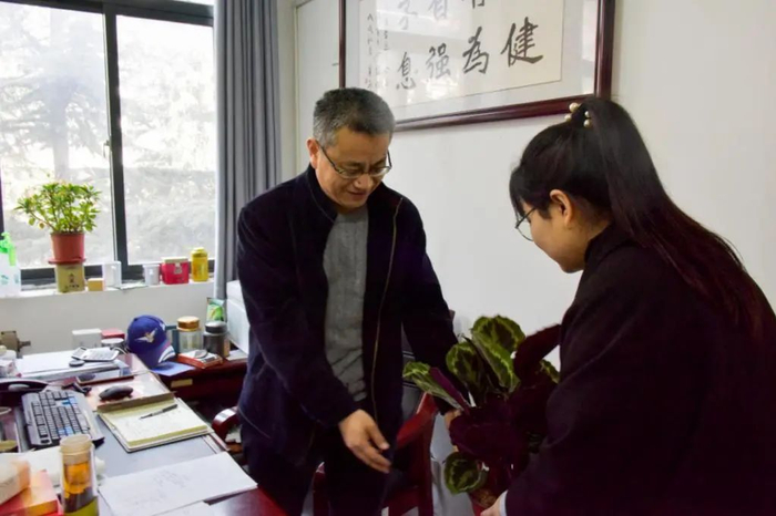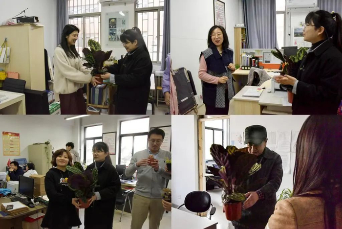 同学们还为辛勤工作的“园丁们”送上绿植与真挚的感谢,感谢他们为培养“祖国的花朵”付出的汗水。肖学斌对同学们表示感谢,他激励大家好好学习专业知识,不负春光,“一年之计在于春”,在这个好时节一起进步,共同开启美好的新学期。