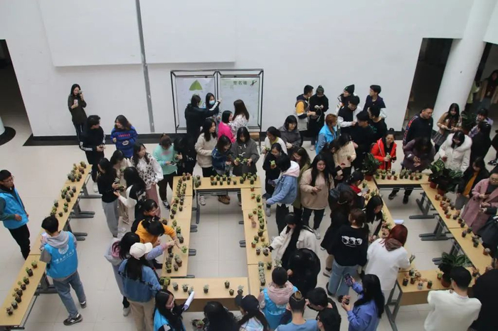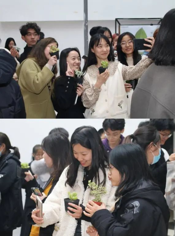 活动现场,师生们热情高涨,纷至沓来,纷纷在现场与绿植合影,盈盈笑脸与绿意交相辉映,为建筑馆带来了别样风景。同学们领养完绿植后,还在签名墙上留下自己的笔迹,寄予了对春天的美好向往。领到绿植的孙畅同学欣喜地表示,自己一定会悉心呵护多肉绿植,记录自己与绿植共同成长的过程,最终让自己和绿植都能成为有作为的“参天大树”。