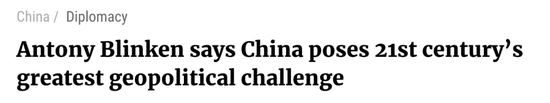 安东尼-布林肯说中国是21世纪最大的地缘政治挑战