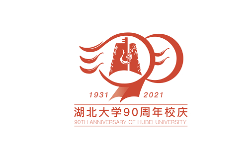 设计理念:标志以逗号和圆形为设计元素,组成了数字90的字样,意即湖北大学建校90周年。逗号有着无止境和永不停息的寓意,圆形寓意着湖大的学科包罗万象;图形内结合了建校年份1931和校庆年份2021的字样,以及湖北大学的英文缩写HUBU。图形四周环绕着九个飞舞的凤冠,每一个都承载着十年的湖大岁月,既像风筝,又像鸟群在天空中欢快地飞舞,寓意着湖大学子名满天下。红色代表积极、喜悦、进取,以及崇尚道德、友善和平等优良学风和美好精神。