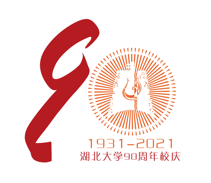 设计理念:金字红底表示对九十年辉煌历史的庆祝与赞美,数字“9”采用网络毛笔艺术字书写,飘逸洒脱,又似粼粼沙湖水,使整个画面的线条有了几分柔美,不同字体的结合使画面不至于呆板,体现湖北大学兼容并包的办学理念。标志下方的校训充分展现了湖北大学的文化精神。在数字“9”上有1931——2021九十年间(不含1931、2021)的7个重要年份环绕,标志着九十年间的重要事件,仿佛一轮正在散发光芒的红日,充满生机朝气。