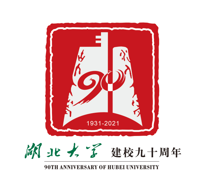 设计理念:纪念标志以中国传统文化“印章”为创意元素,内部结构采用了湖北大学标志中“编钟”图形进行变化,将其中“凤凰”巧妙改为“90”字样组合而成的二只小凤凰,象征建校的历史年轮,更似九十周年校庆纪念。标志整体形态疏密有致、直曲相生、温润祥和,凸显出湖大学府的儒雅、厚重与深邃;中国红(印章红)和湖大绿的色彩组合在形与意中表达了融合共生,体现了学校九十周年的喜庆、祥和、充满活力的氛围。
