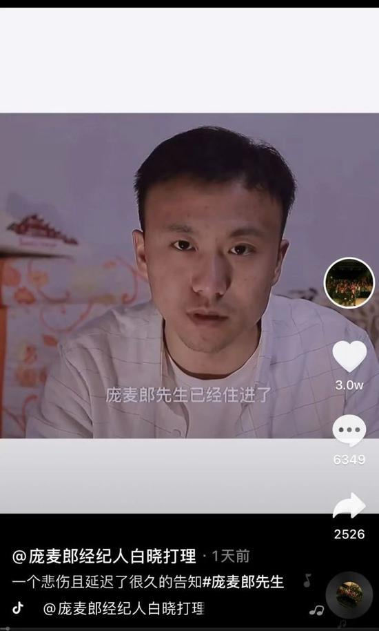 白晓向公众告知庞麦郎住院的消息