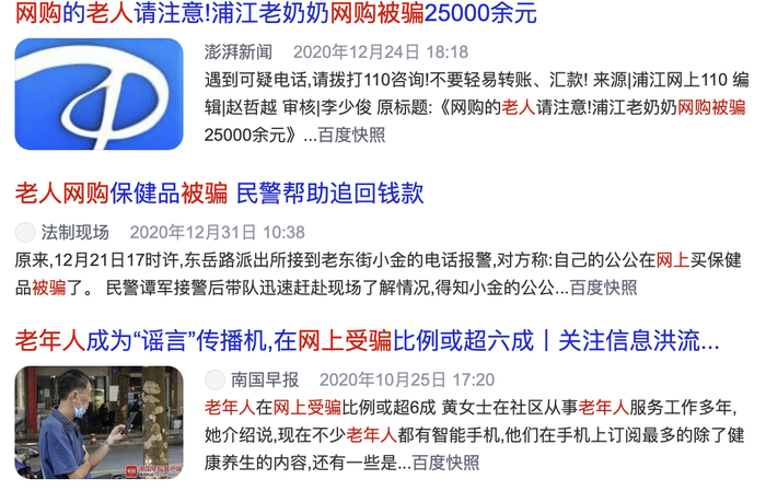 相比起年轻人来说,老人对网上销售的产品信息很难全面掌握,面对商家的虚假宣传,无法从表面判断商品质量和功能优劣,面对宣传内容时缺少甄别能力。