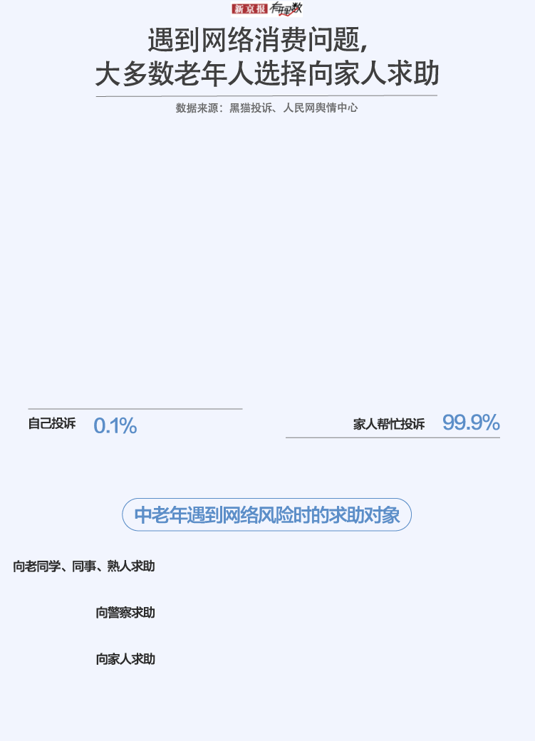 在拥有强大资本和资源的发展商面前,不熟悉网络环境的老年消费群体显得相对弱势,遭受网络风险时并不会自主维权,家人是他们的第一求助对象。
