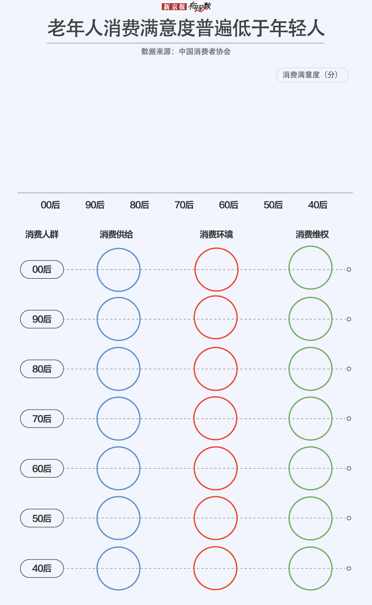 据中消协发布的70个城市消费者满意度调查数据显示,消费者满意度得分最低的为40后,仅为71.85分。