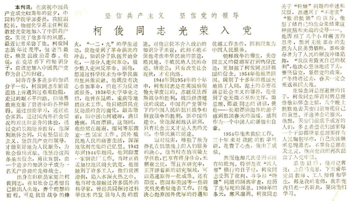 在柯俊先生身上,集中体现了老一辈科学家爱党爱国的报国情怀、实事求是的治学精神、敢为人先的创新品格。作为后辈的我们,当以先生为榜样,励志奋斗,为中华民族伟大复兴贡献自己的力量!